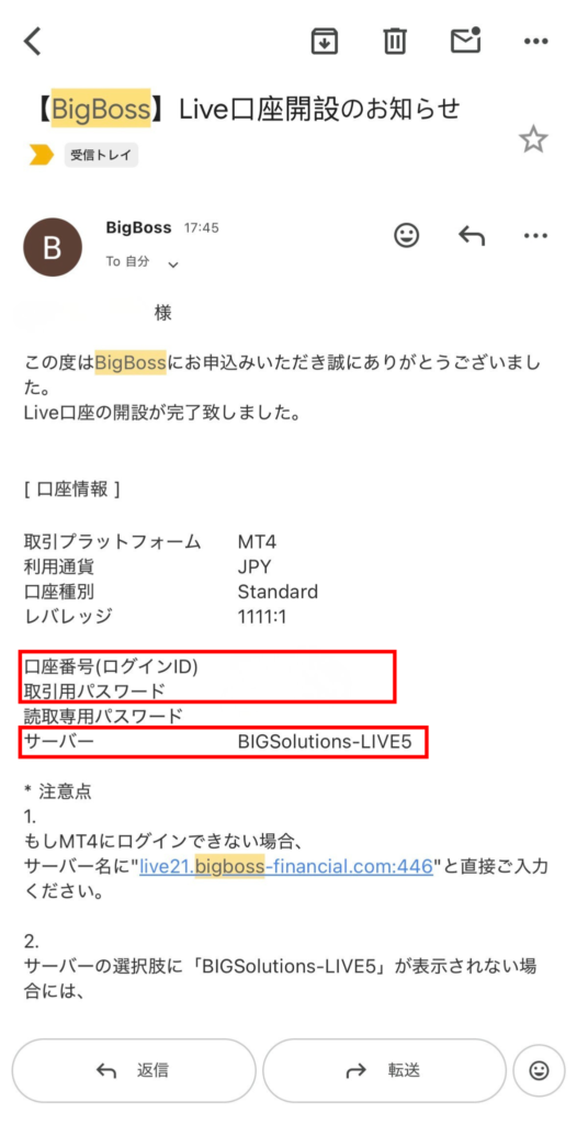 口座開設ができたらBigBossへログインして運用資金を入金します。
