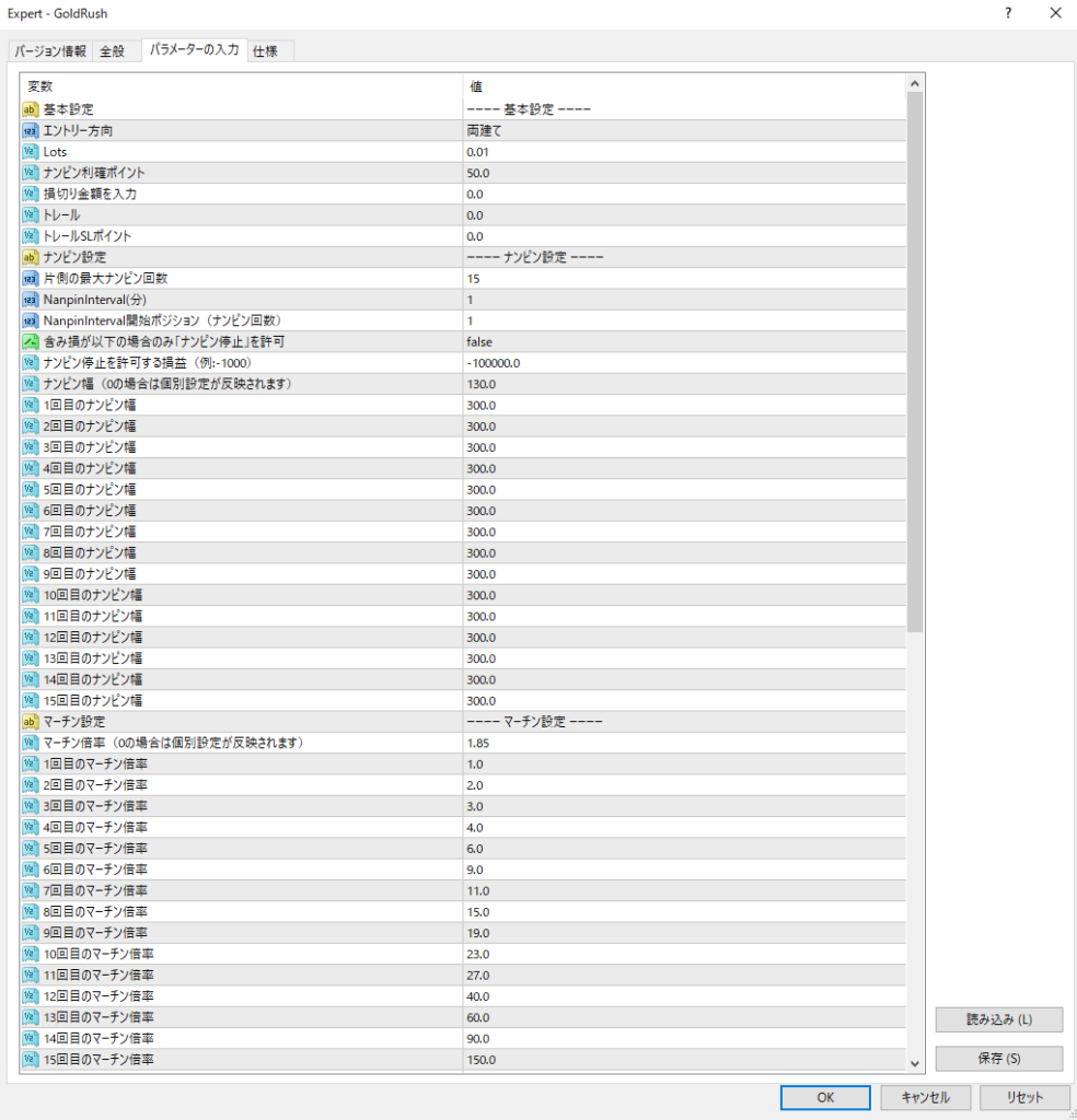 あけすぎると、このEAの強みが弱くなるため注意が必要です。